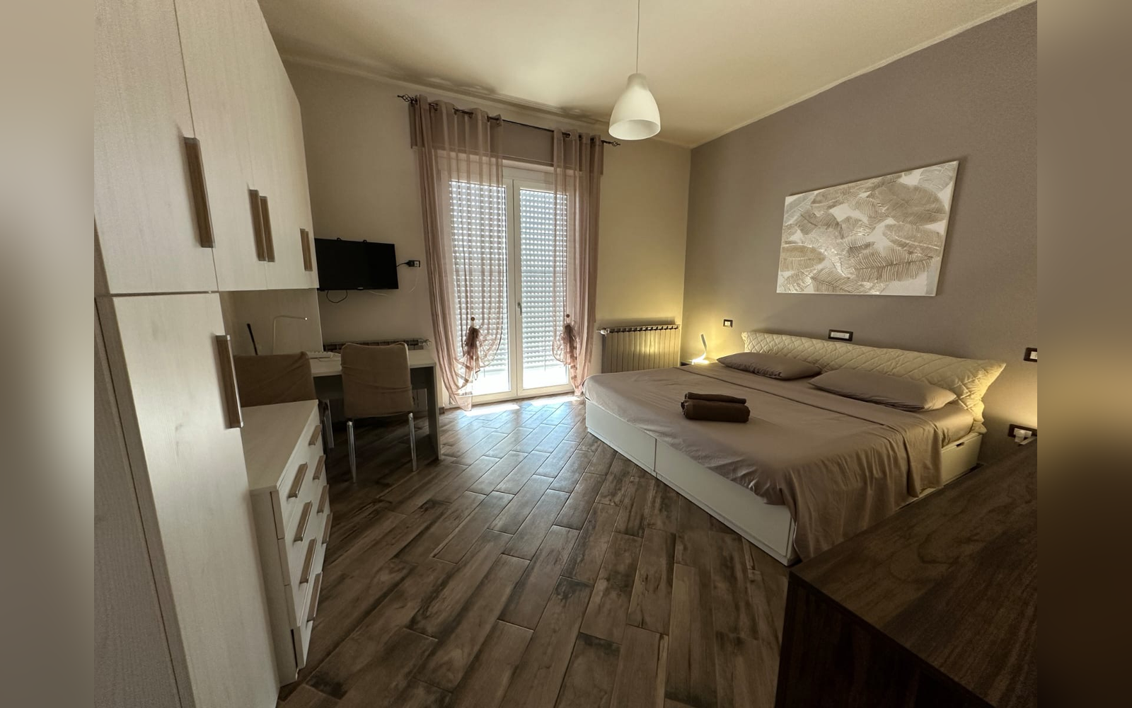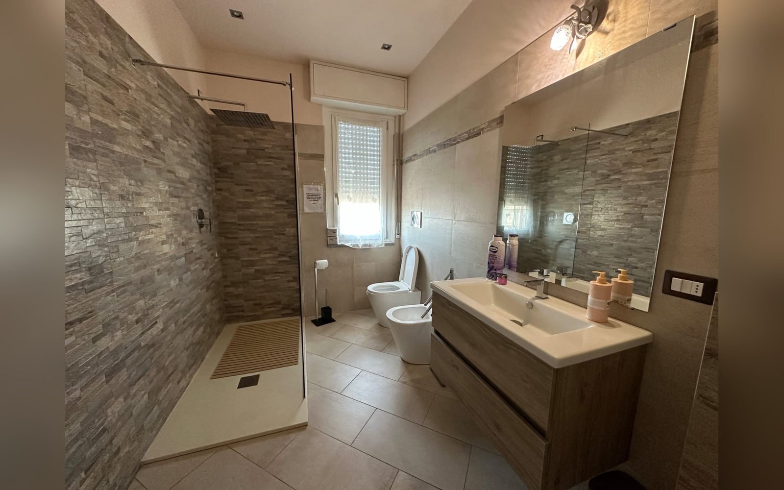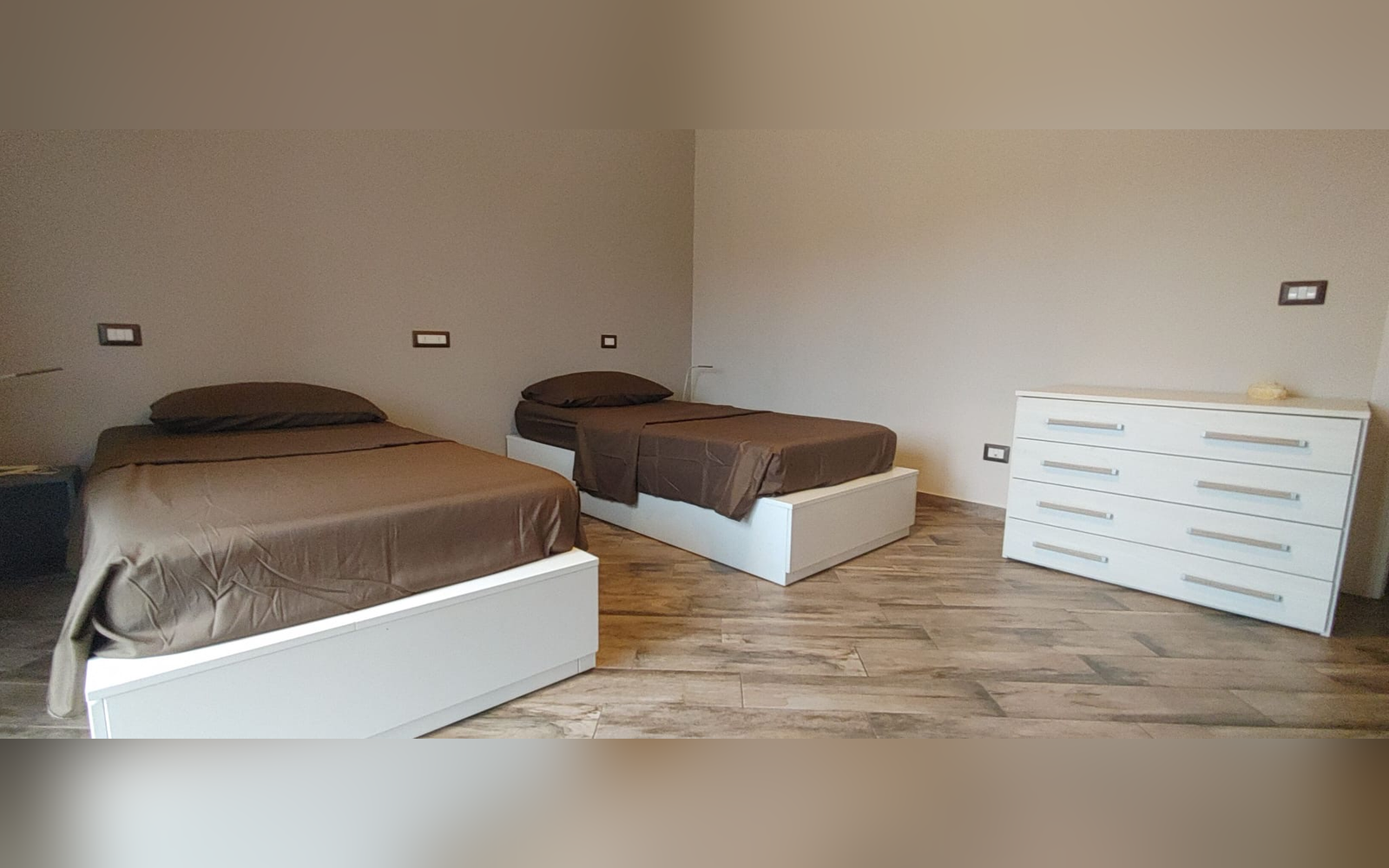 Villa di 115 m² situata al primo piano, composta da quattro camere da letto, due bagni, cucina completa e ambienti ampi e luminosi. La disposizione delle camere consente di ospitare comodamente fino a 9 persone: una camera con due letti matrimoniali alla francese, una camera con letto matrimoniale large, una camera con letto matrimoniale alla francese e una camera singola. La casa è ideale per soggiorni in compagnia, offrendo spazi funzionali e ben organizzati, perfetti per vivere la villa con libertà e comodità.Spazi esterni riservati agli ospiti, attrezzati con comodo arredamento da esterno e impreziositi da fiori, ideali per momenti di relax all’aria aperta. Tra l'altro c’è la possibilità che una camera matrimoniale, su richiesta, si possa trasformare in due letti singoli.